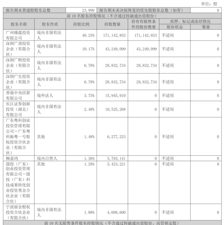 广东粤科创业投资惩处有限公司-广东粤科振粤一号股权投资结伙企业(有限结伙)抓股1.48%,柳嘉鸿抓股1.36%,国投(广东)创业投资惩处有限公司-国投(广东)科技效果转机创业投资基金结伙企业(有限结伙)抓股1.28%,宁波丽金股权投资结伙企业(有限结伙)抓股1.08%。
